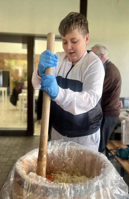 Sto kilogramów kapusty, jedna beczka i mnóstwo rąk do pracy