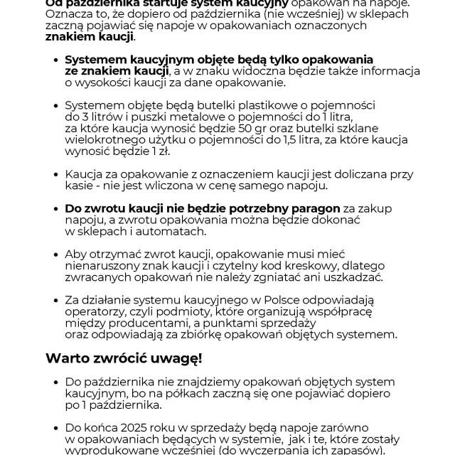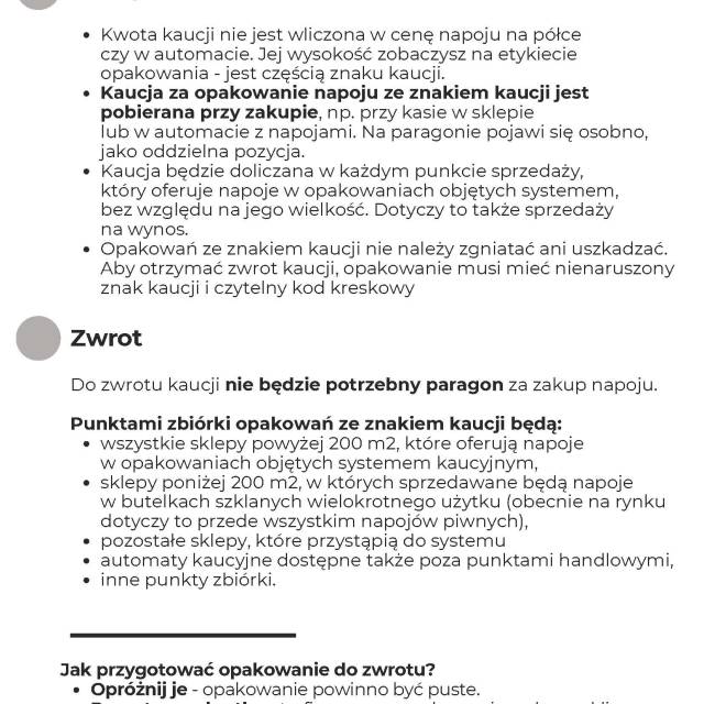 Szczegółowe informacje o systemie kaucyjnym znajdziesz w poniższych grafikach.