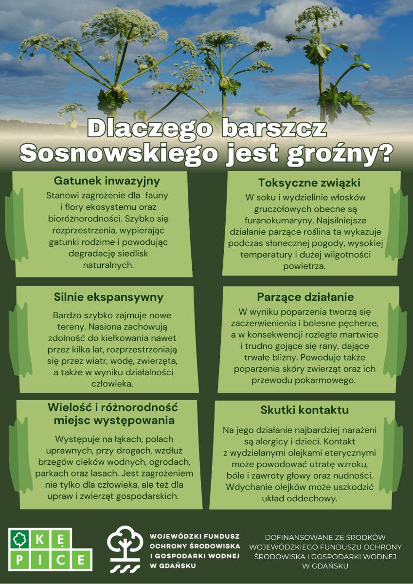 Gmina Kępice prowadzi kampanię edukacyjną w ramach projektu „Ochrona rodzimej przyrody gminy Kępice przed inwazją barszczu Sosnowskiego”, który w całości został dofinansowany ze środków Wojewódzkiego Funduszu Ochrony Środowiska i Gospodarki Wodnej w Gdańsku w ramach naboru ogólnego. Wartość przyznanego wsparcia finansowego wynosi 99 954,00 zł, co stanowi 100% kosztów kwalifikowanych.