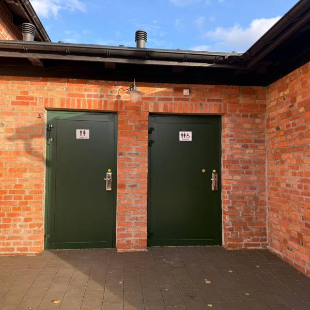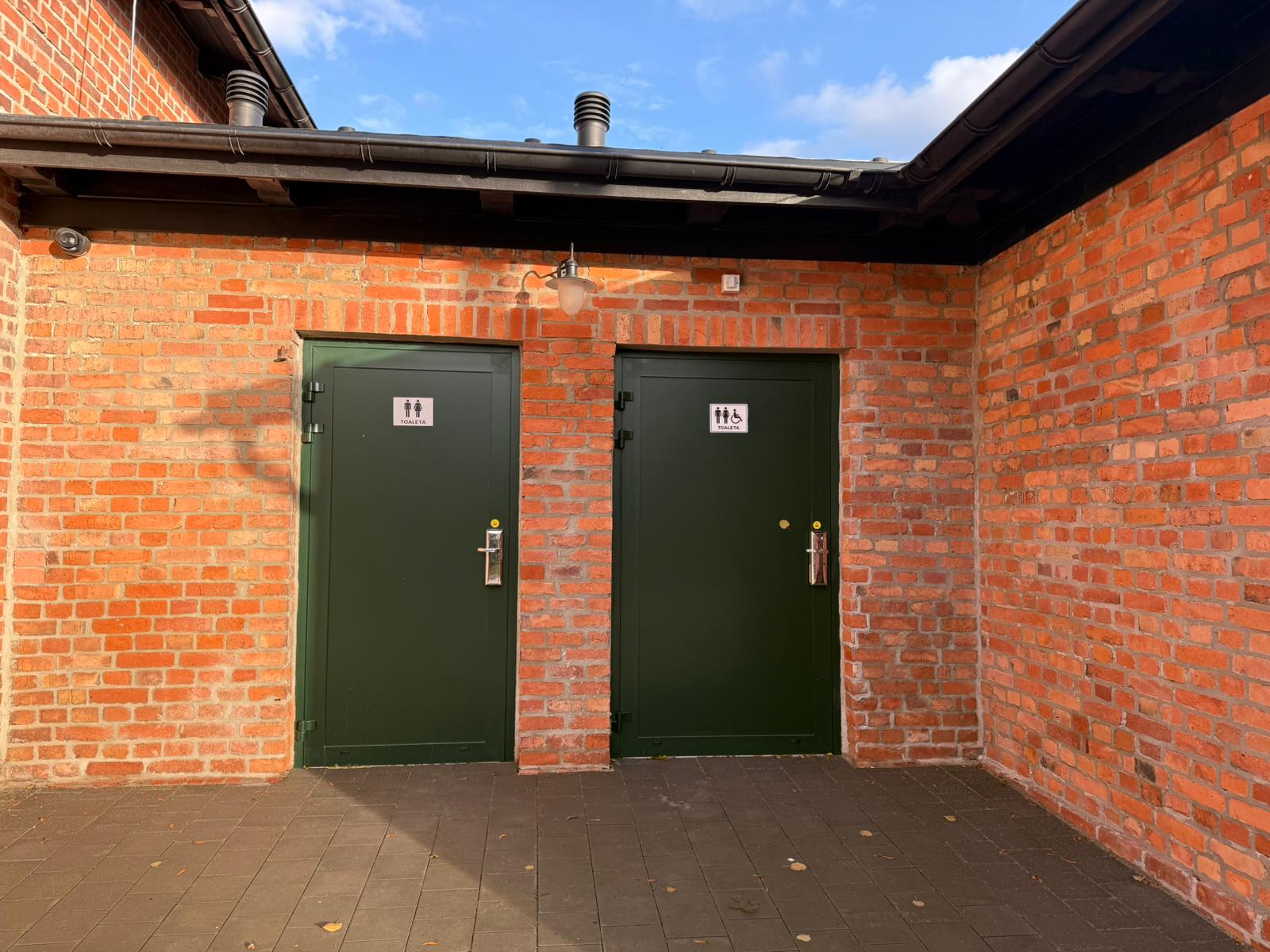 W budynku dworca kolejowego można skorzystać z toalet w poczekalni, a także dostępnych z zewnątrz z drugiej strony obiektu.