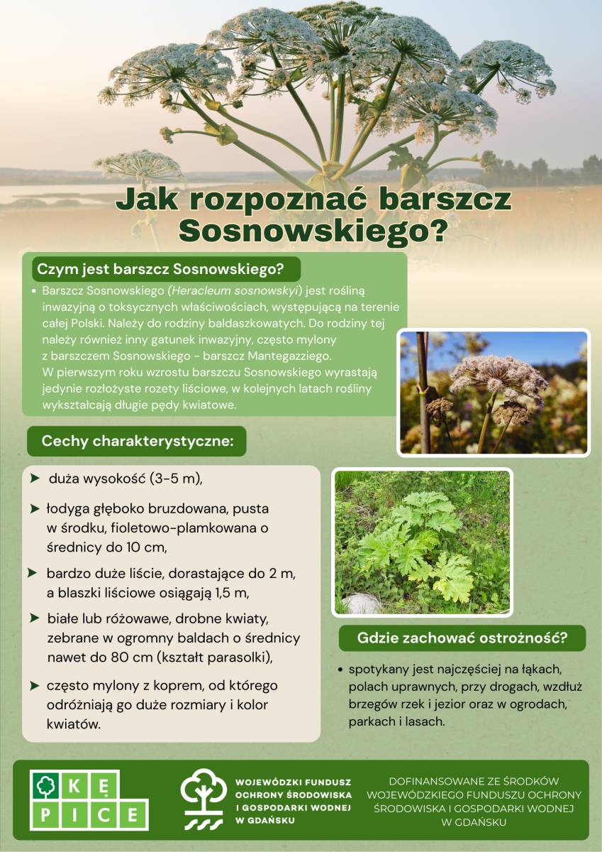 Gmina Kępice prowadzi kampanię edukacyjną w ramach projektu „Ochrona rodzimej przyrody gminy Kępice przed inwazją barszczu Sosnowskiego”, który w całości został dofinansowany ze środków Wojewódzkiego Funduszu Ochrony Środowiska i Gospodarki Wodnej w Gdańsku w ramach naboru ogólnego. Wartość przyznanego wsparcia finansowego wynosi 99 954,00 zł, co stanowi 100% kosztów kwalifikowanych.