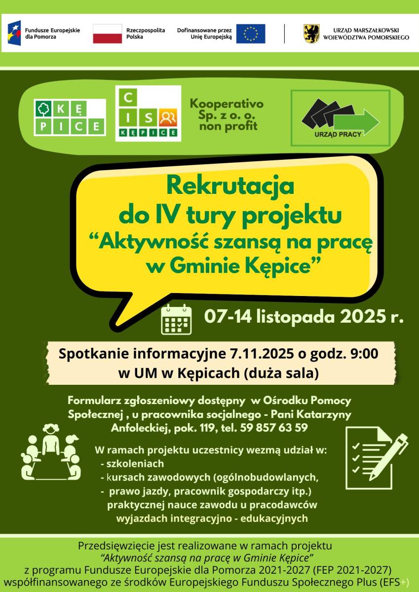 Spotkanie rekrutacyjne odbędzie się 7 listopada 2025 r. o godzinie 9:00 w Urzędzie Miejskim w Kępicach. Dokumenty zgłoszeniowe można składać do 14 listopada.