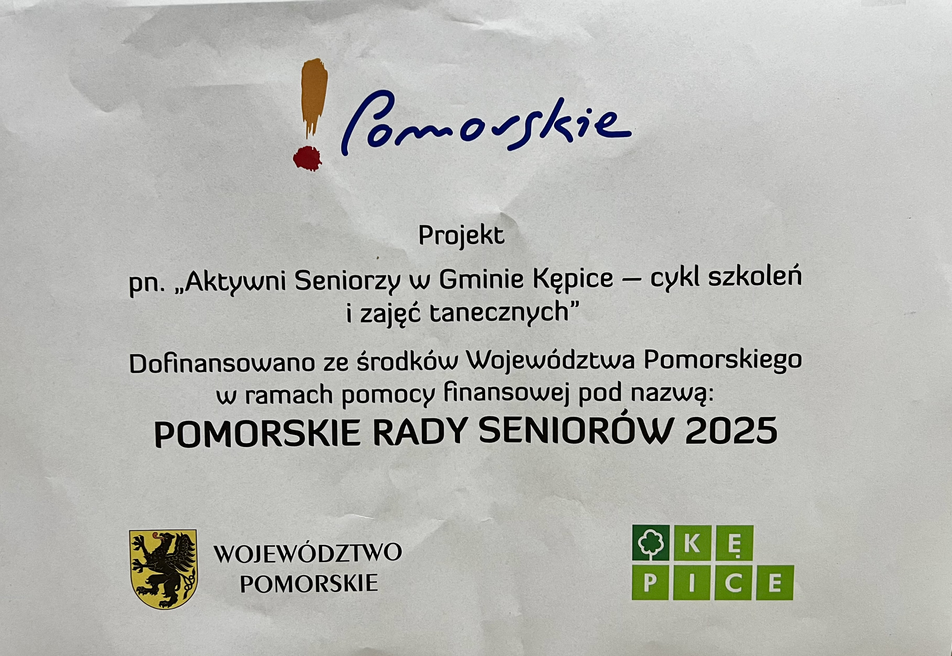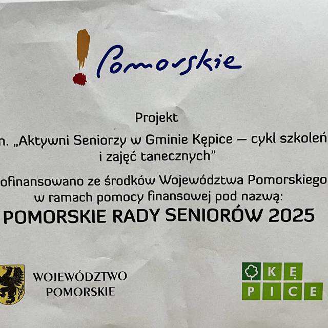 Projekt „Aktywni Seniorzy w Gminie Kępice” realizowany jest dzięki dotacji Sejmiku Województwa Pomorskiego w ramach programu „Pomorskie Rady Seniorów 2025”, na wniosek Gminnej Rady Seniorów. Gmina Kępice pozyskała na ten cel 10 tysięcy złotych dofinansowania, a drugie tyle przeznaczyła z własnego budżetu.