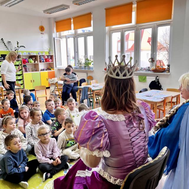 W Kępicach najmłodszych odwiedziły Elza i Księżniczka z kępickiej biblioteki, które w grupach przedszkolnych oraz zerówce przeczytały dzieciom bajki, wspólnie z nimi zatańczyły księżniczkowy taniec, a na koniec poczęstowały najmłodszych słodkim upominkiem.