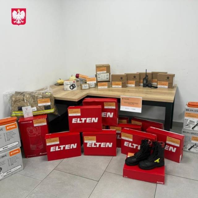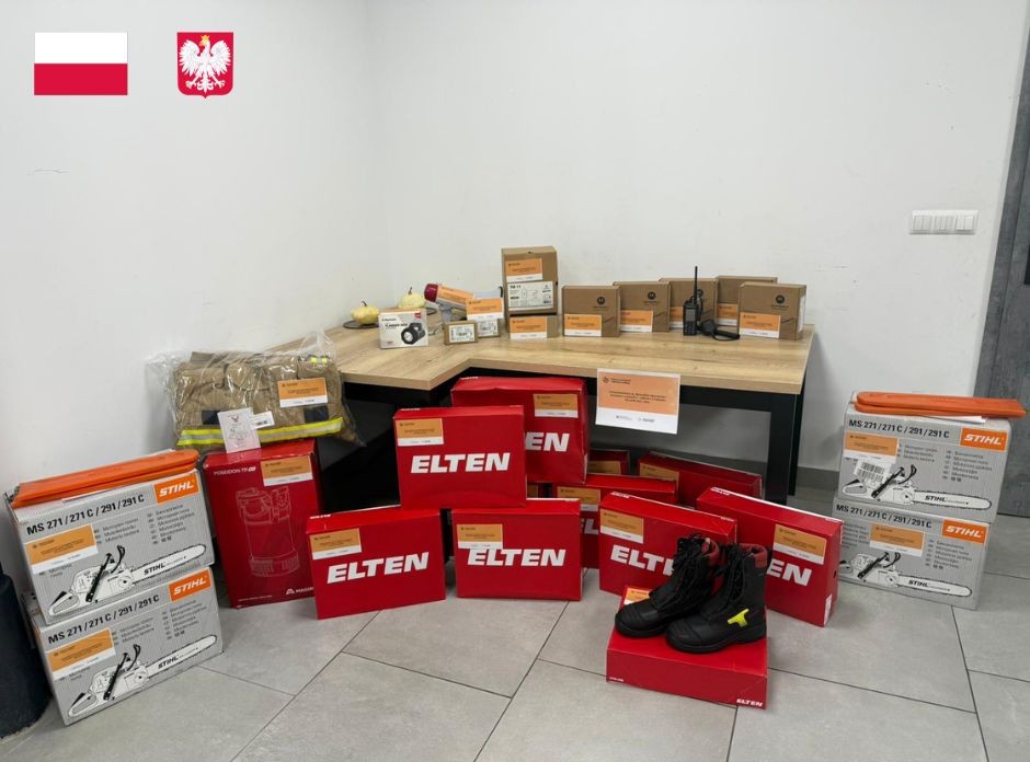 To między innymi pompa zanurzeniowa, pilarki do drewna, megafon, a także wyposażenie indywidualne strażaków, w tym ubranie specjalne, buty, radiotelefony, czujniki bezruchu i latarka szperaczowa.