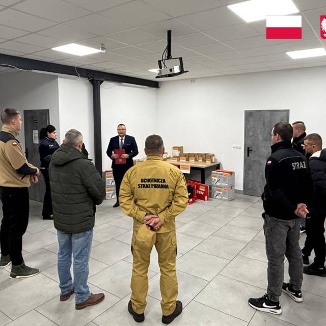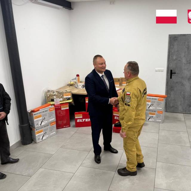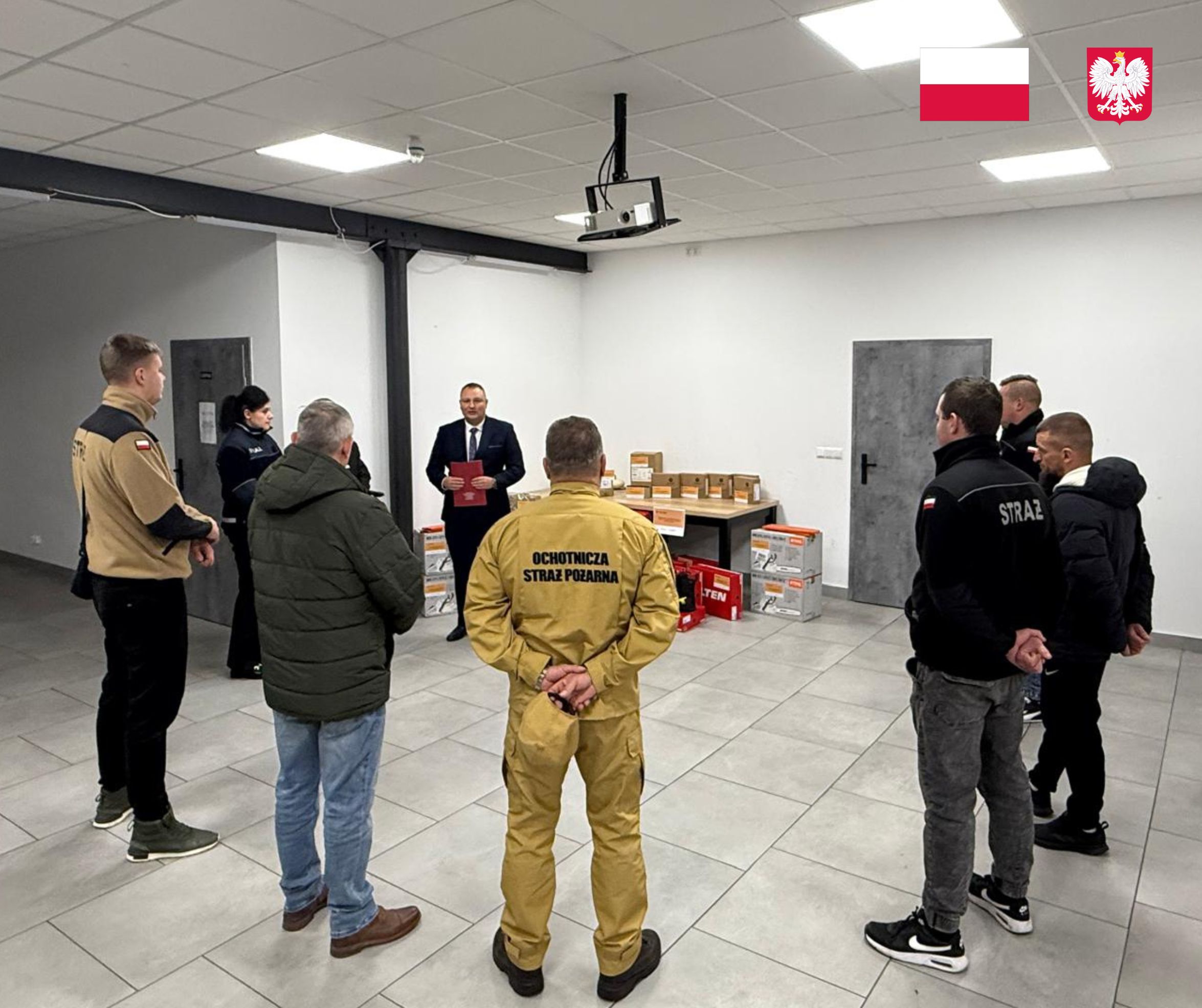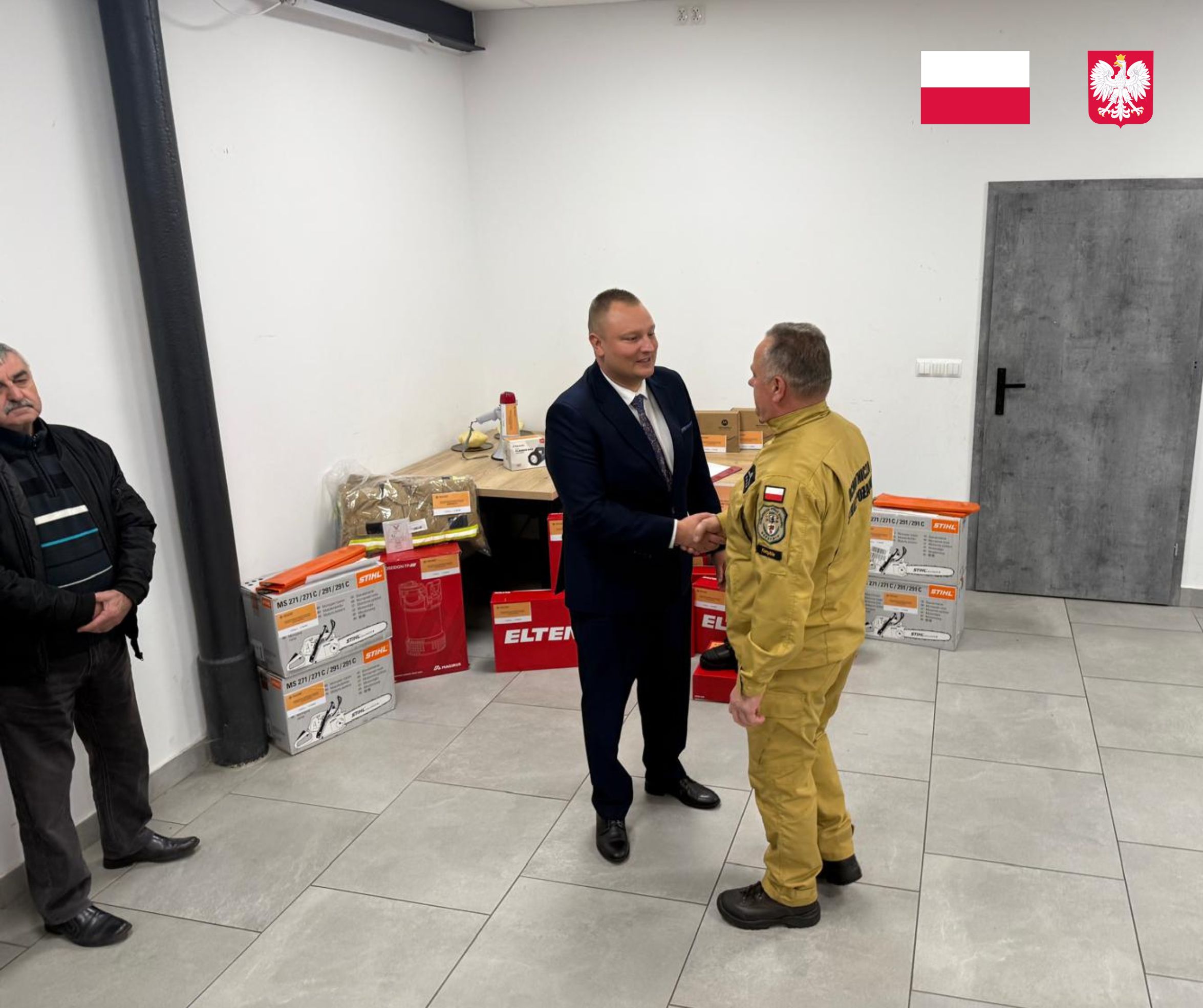 Dziś strażacy odebrali wyposażenie osobiste i sprzęt ratowniczy, natomiast agregaty prądotwórcze zostaną rozdysponowane w przyszłym tygodniu. Realizacja zadania wzmacnia bezpieczeństwo mieszkańców, zapewnia ciągłość działania kluczowej infrastruktury oraz podnosi gotowość operacyjną wszystkich jednostek OSP funkcjonujących na terenie gminy.