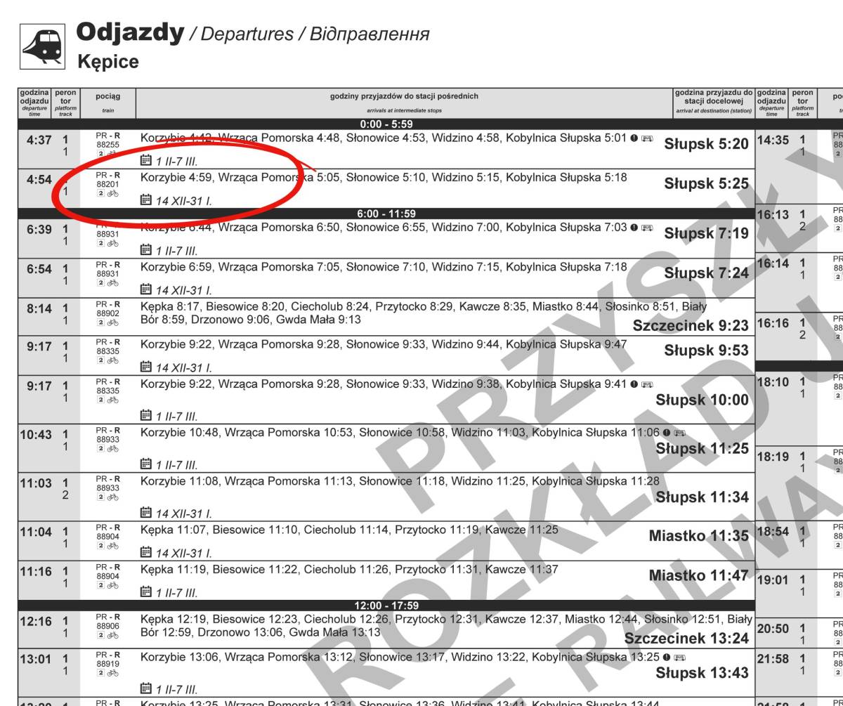 Bardzo ważną informacją jest to, że w przyszłym roku na odcinku Kobylnica – Słupsk obowiązywać będzie komunikacja zastępcza. Dlatego w nowych rozkładach drukowanych ujęte są podwójne godziny przyjazdów i odjazdów obowiązujące od 14 grudnia 2025 do 31 stycznia 2026 oraz od 1 lutego 2026 do 7 marca 2026 – kiedy to pasażerowie będą musieli na odcinku Kobylnica-Słupsk przesiąść się do autobusu.