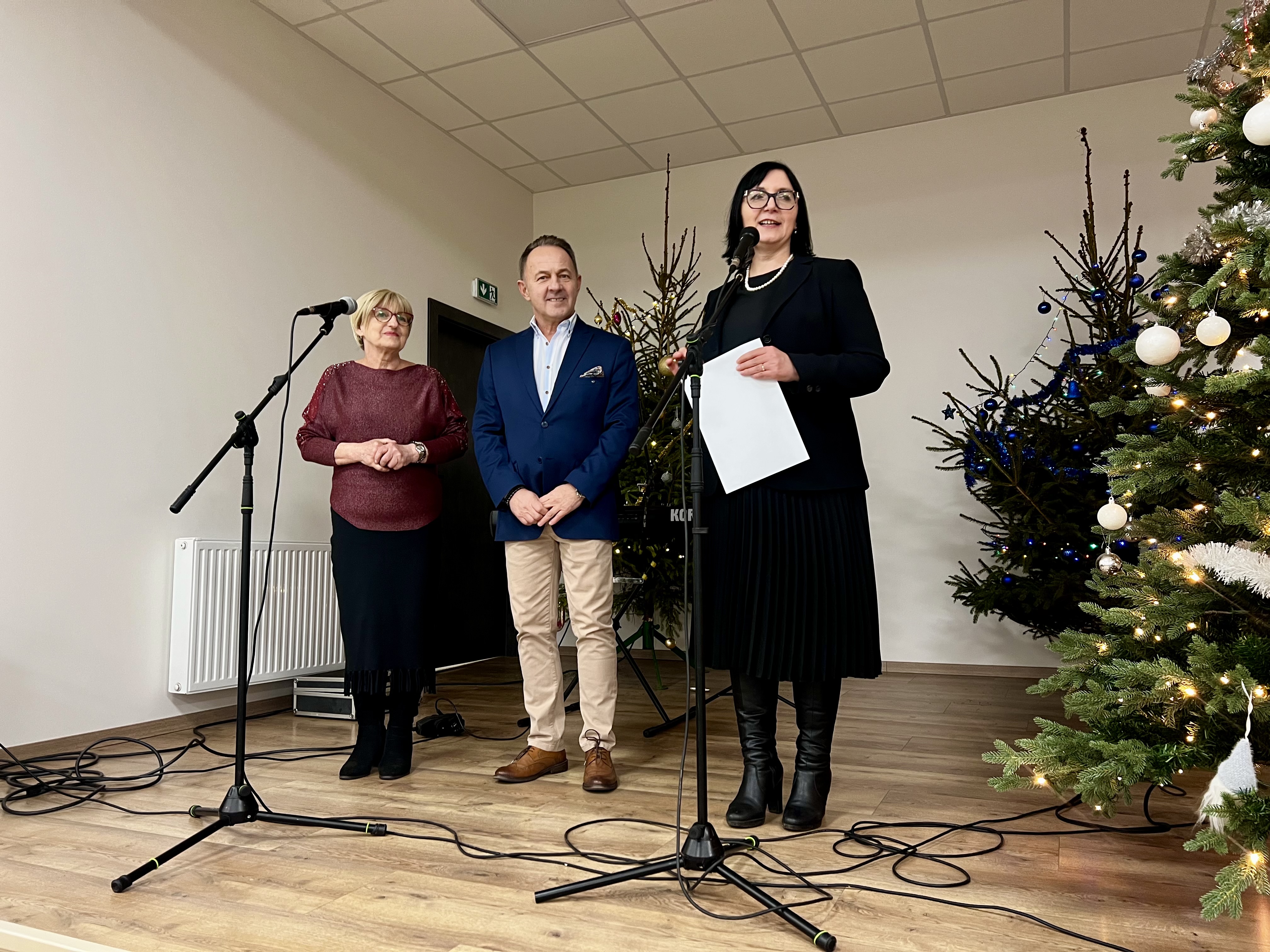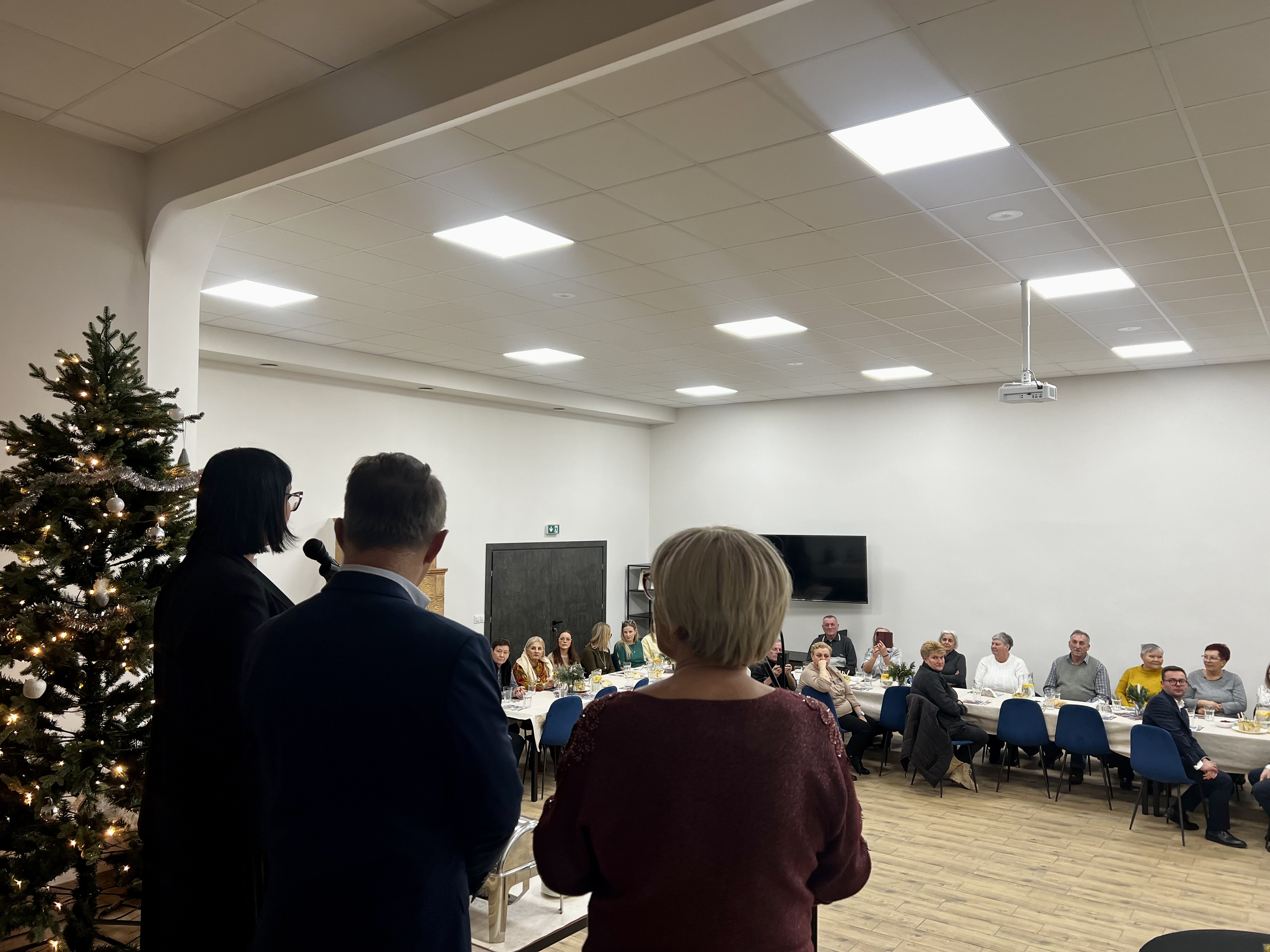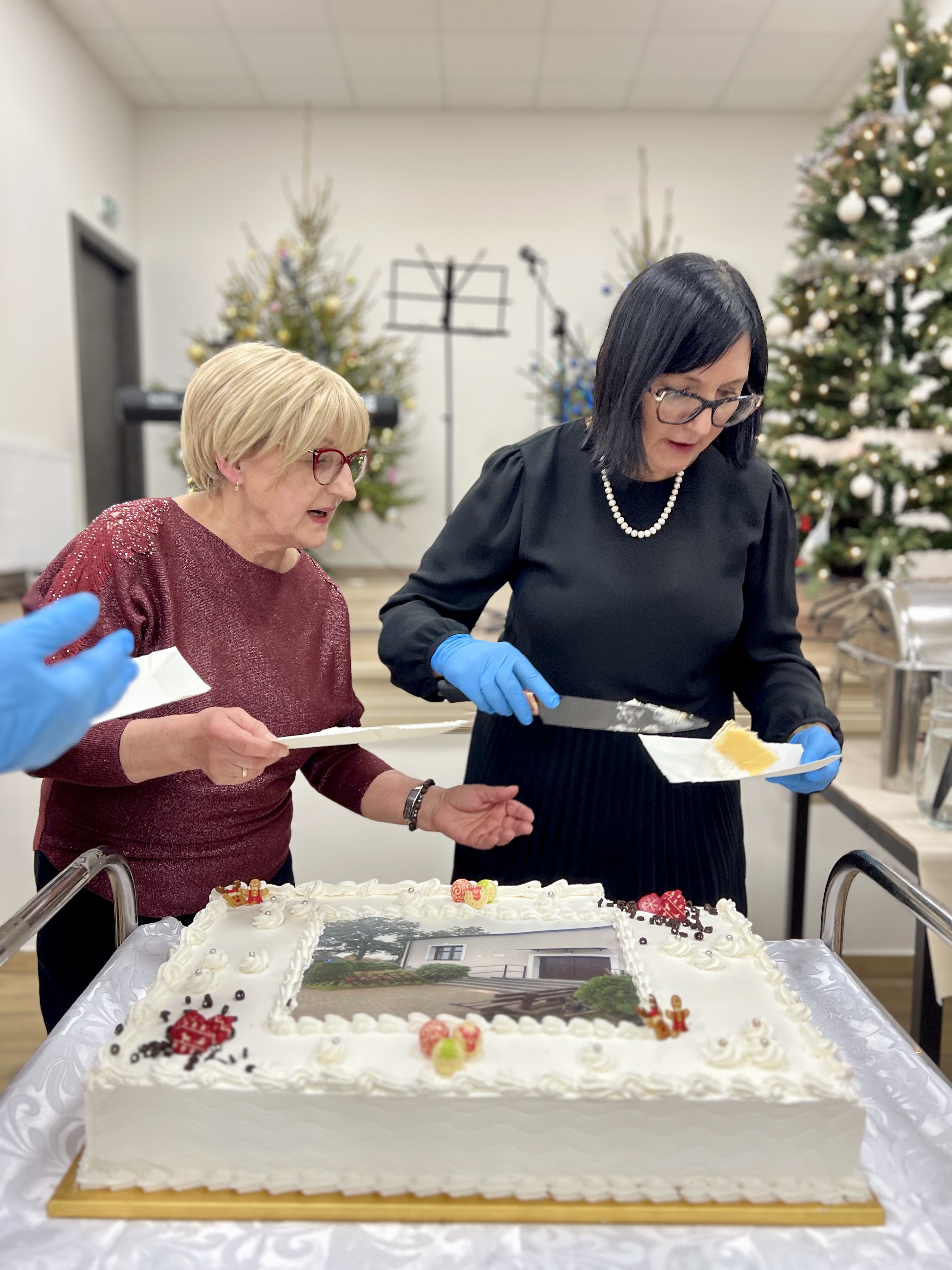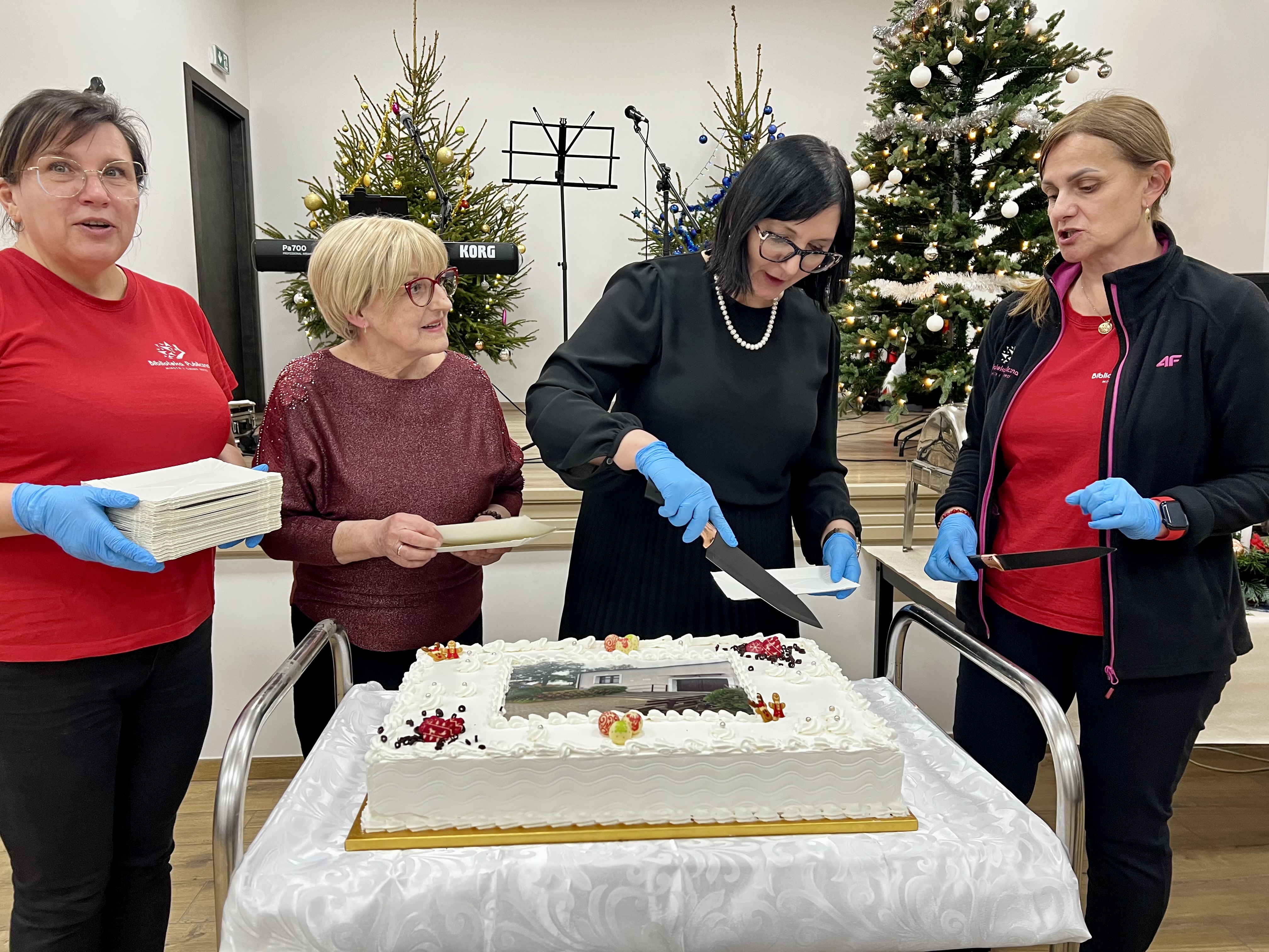 O godzinie 16 przecięto symboliczną wstęgę i zaproszono mieszkańców do środka, gdzie czekał na nich wigilijny poczęstunek oraz tort, a to wszystko przy akompaniamencie Męskiego Trio.