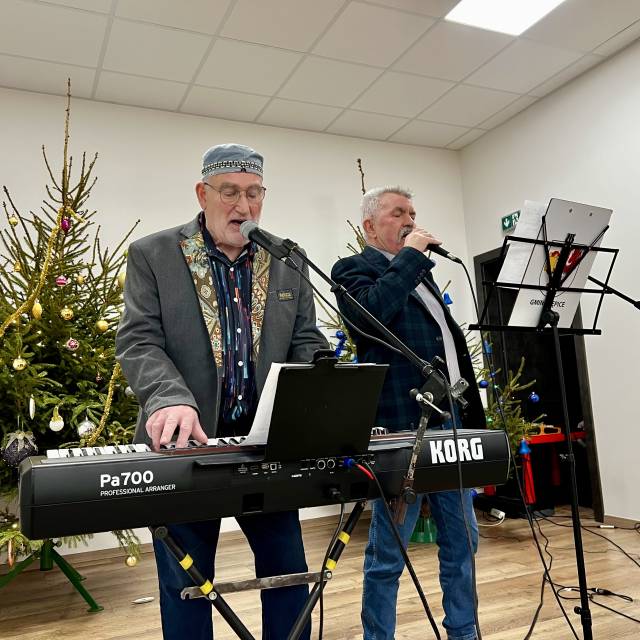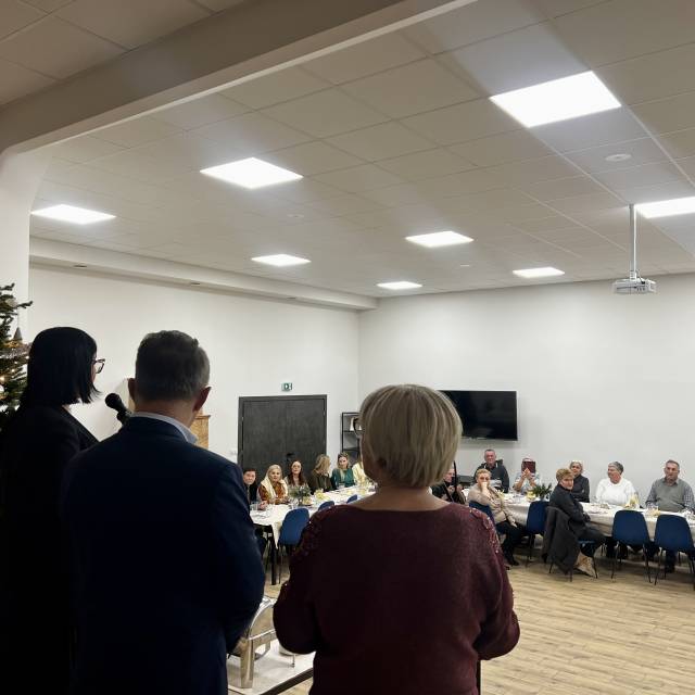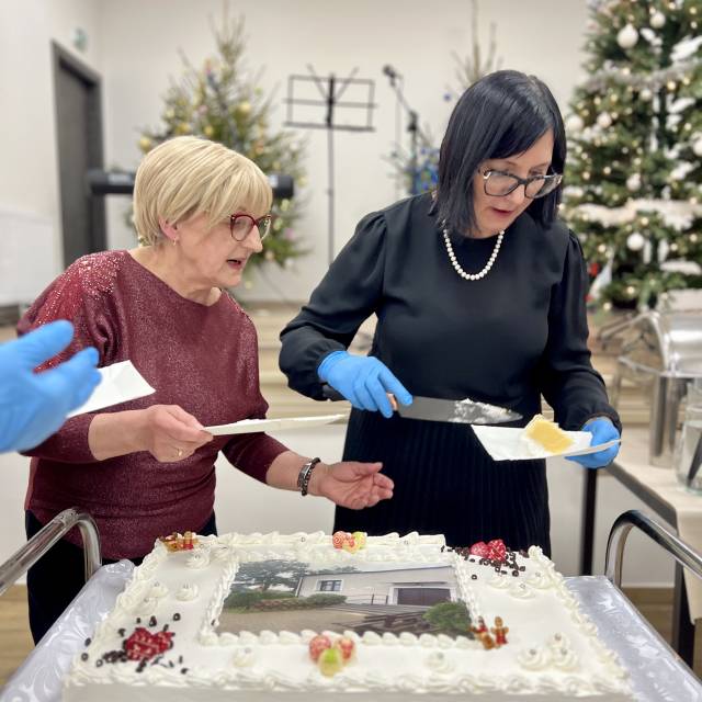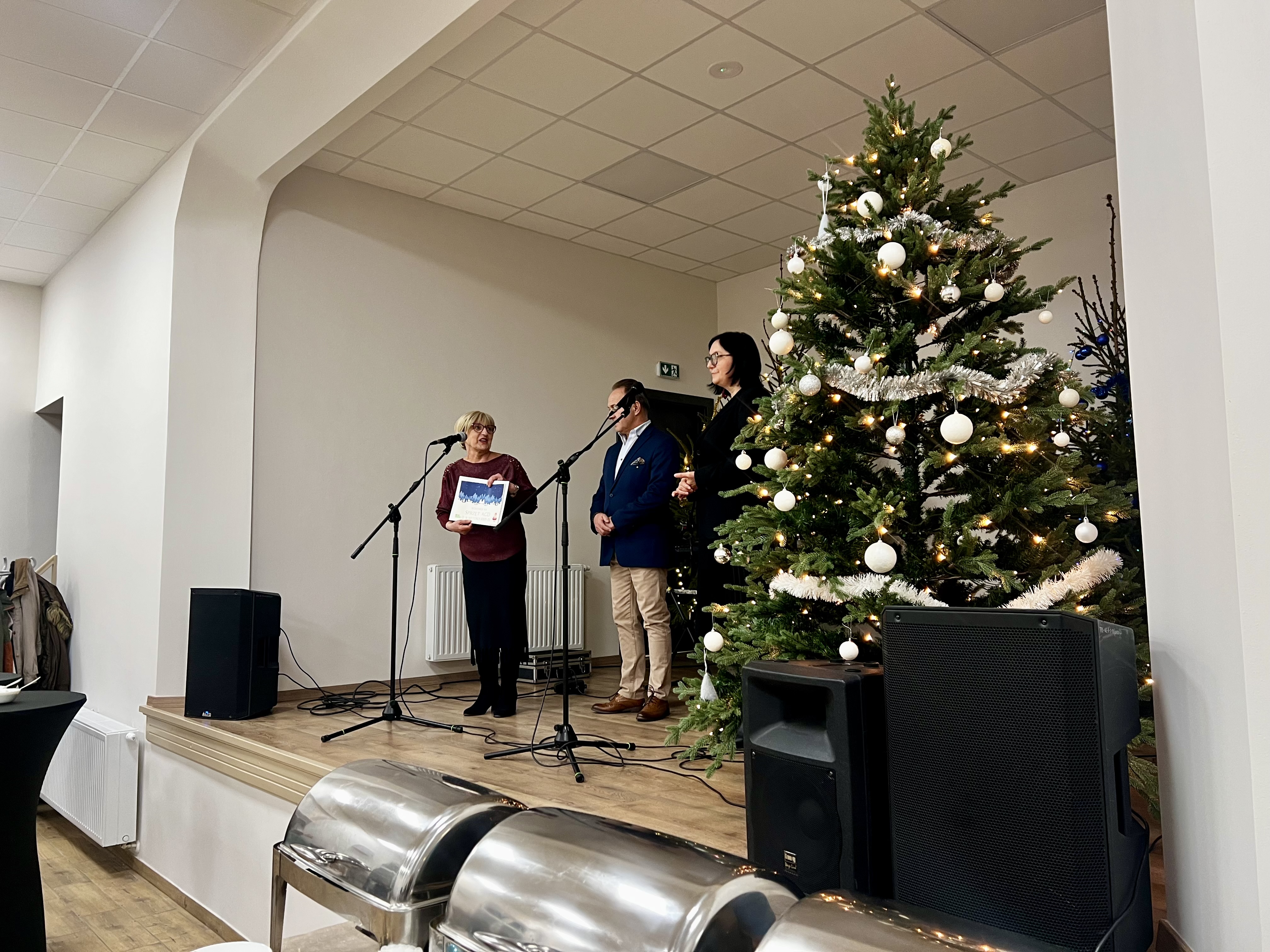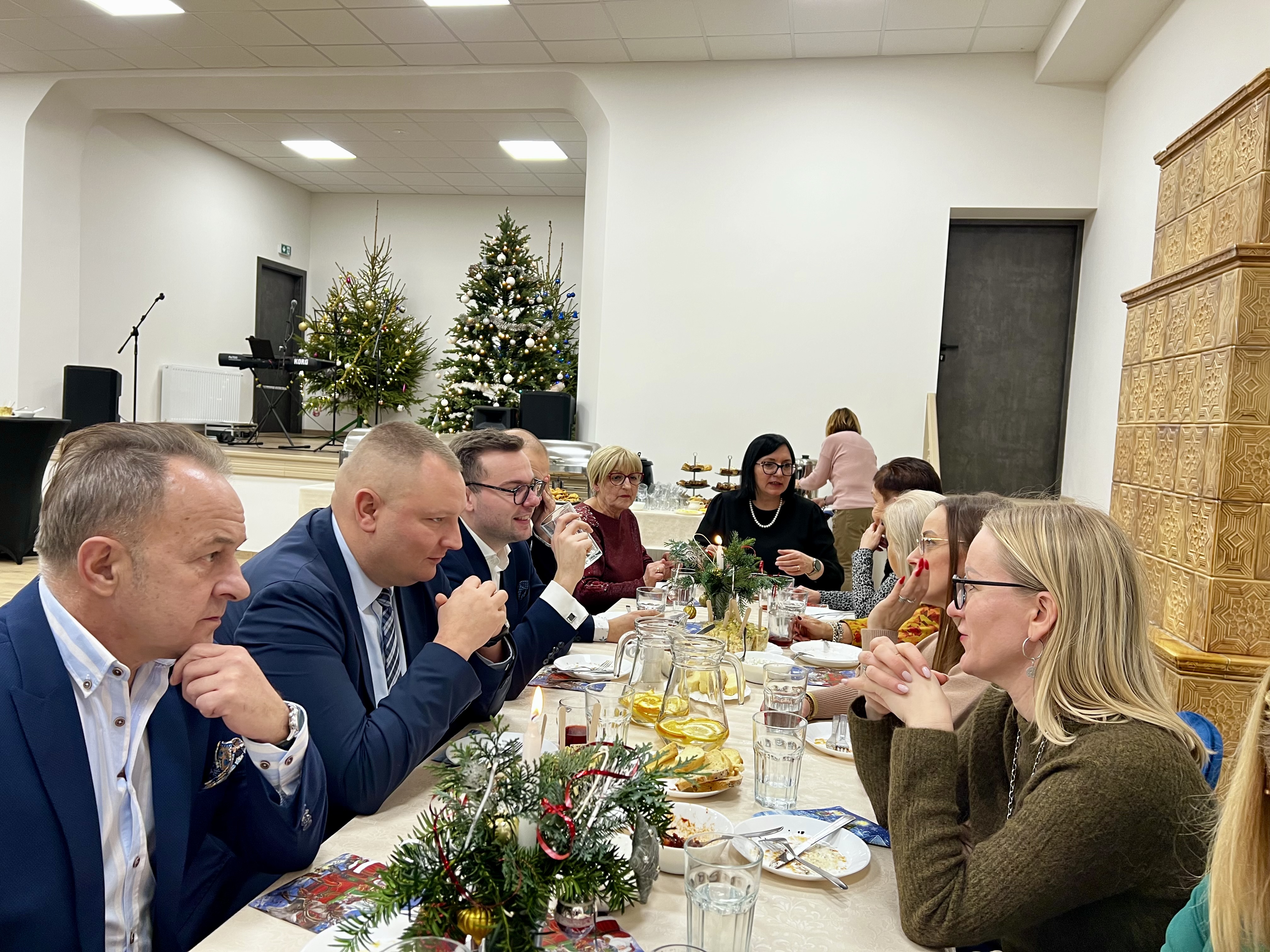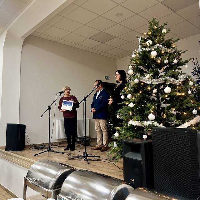 O godzinie 16 przecięto symboliczną wstęgę i zaproszono mieszkańców do środka, gdzie czekał na nich wigilijny poczęstunek oraz tort, a to wszystko przy akompaniamencie Męskiego Trio.