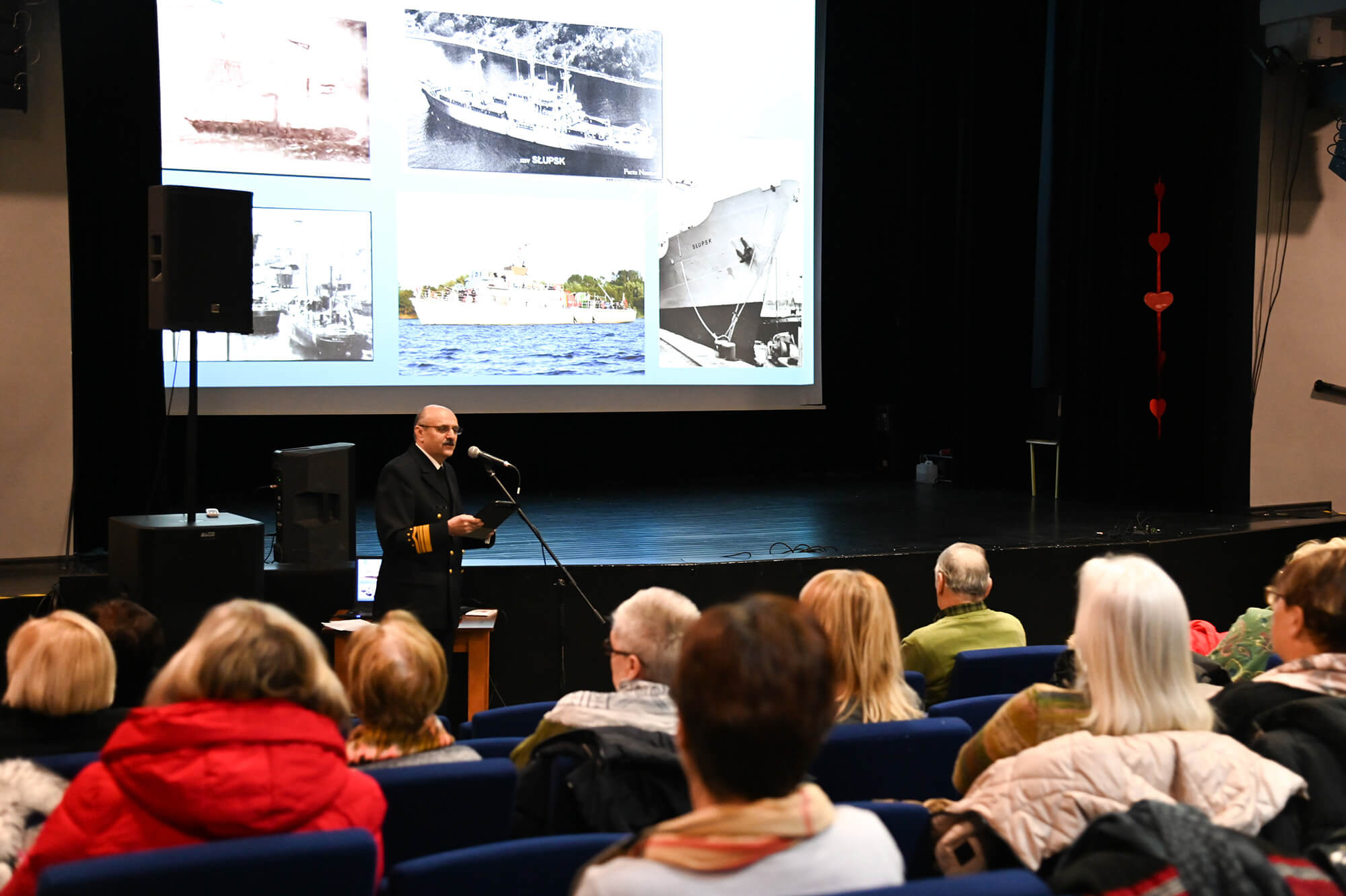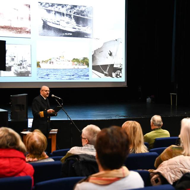 Podczas wykładu omówione zostały dzieje portu w Ustka, jego znaczenie na przestrzeni lat oraz wpływ na rozwój regionu. Prelegent przybliżył także sylwetki osób ze Słupsk, których działalność była związana z morzem, a także przedstawił ciekawostki dotyczące statków zatopionych w okolicach wybrzeża podczas II wojny światowej.